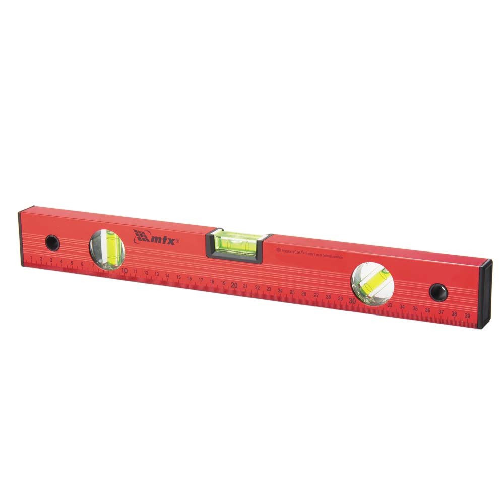 O Nível de alumínio reforçado 16, possui corpo em alumínio, proporcionando maior leveza e 3 bolhas, sendo uma para nivelamento vertical, uma para nivelamento horizontal e uma para nivelamento 45. A precisão de medição é de 0.5 mm m. Na parte superior há uma caixa com um refletor de espelho, diminui os erros nas leituras em planos frontal e transversais.