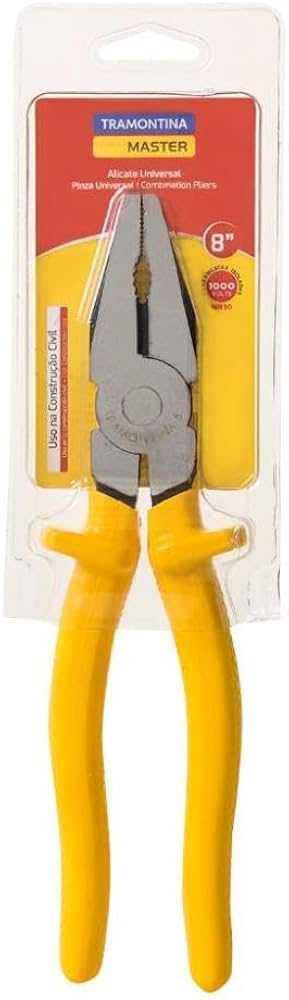 O Alicate Universal 8 Polegadas Isolado 1000 V Tramontina MASTER é a opção perfeita para quem precisa de um alicate versátil e resistente! Produzido em aço vanádio temperado, possui cabo de plástico ergonômico que evita que os dedos escorreguem da ferramenta. O cabo também oferece proteção contra correntes elétricas de até 1.000 V em corrente alternada. Desenvolvido para cortar, apertar e dobrar cabos e metais, vai ser o auxiliar perfeito para suas tarefas.