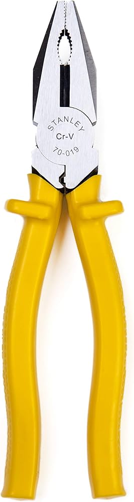 Alicate Universal De 8mm - Stanley Acabamento polido; cabo com textura anti deslizante; desenvolvido para trabalhos pesados; superfície de corte tratada termicamente; indicado para puxar, prender, enrolar, deformar, girar e cortar cabos e arames; comprimento: 8" – 203mm. Características Técnicas: - Indicado para puxar, prender, enrolar, deformar, girar e cortar cabos e arames. - Tipo: Universal - Comprimento Total: 8" (203mm) - Profundidade Da Mandíbula: 55mm - Capacidade De Mandíbula: 30mm - Largura: 2" (50mm) - Altura: 1/2" (13mm) - Material do Cabo: PVC - Material Da Mandíbula: Cr-V